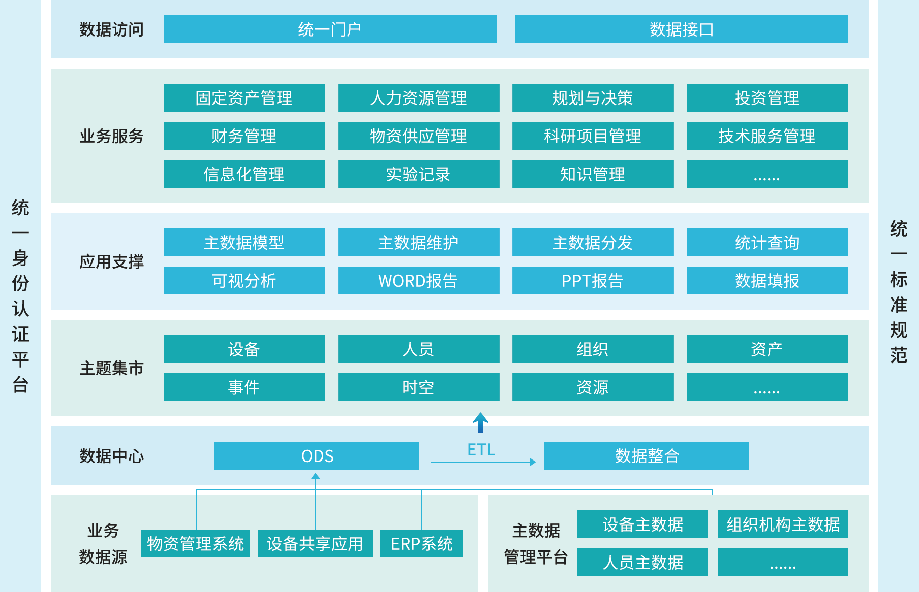 中石化石油化工科学院数据管理平台的建设,一方面实现主数据管理系统建设,另一方面整合物资管理系统、设备共享应用、ERP系统、科研管理系统等各类型应用系统,建设成中石化石油化工科学院数据管理中心,为其他应用工作给予数据服务,为管理部门业务工作赋能。