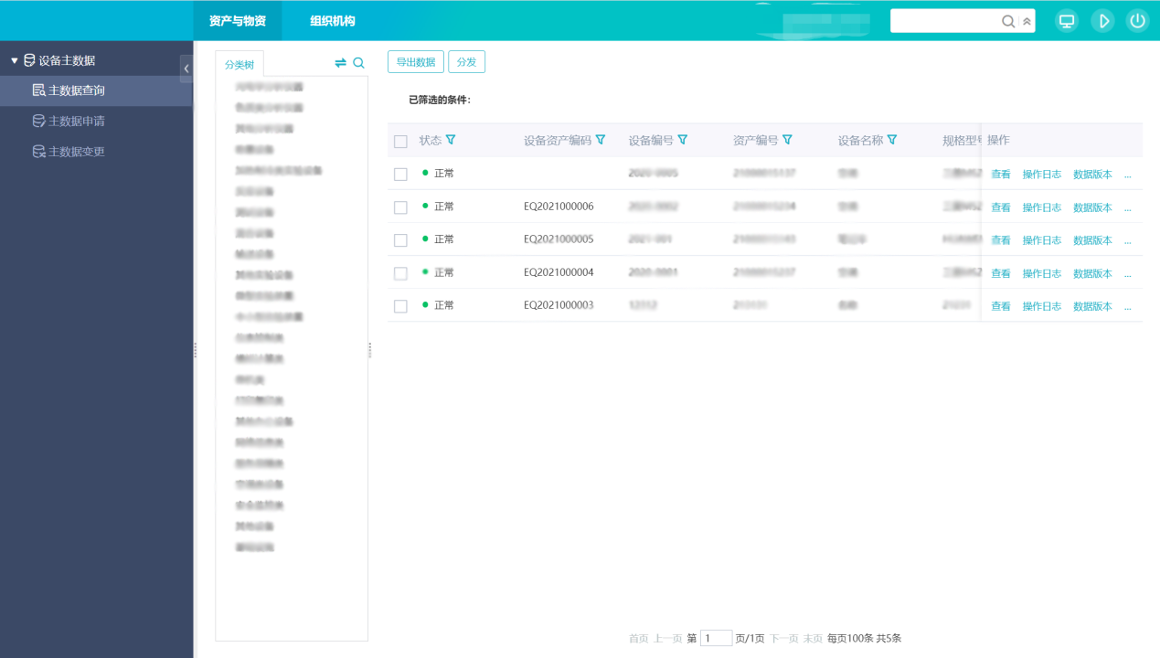 本次项目主要完成设备主数据建设,以及组织组织相关主数据模型建设。设备主数据主要包括设备编号、资产编号、设备名称、规格型号、技术参数、生产厂家、国别、资产原值、分类、保管人、所在班组、保管部门、设备状态等基本信息,其中保管人、所在班组、保管部门与组织组织主数据关联。