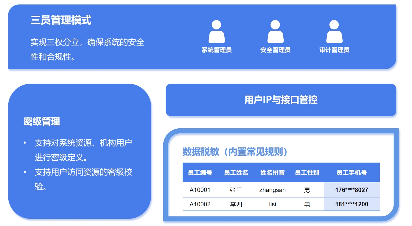 同时,支持用户权限密级管理功能,支持定义安全用户在访问平台资源时,严格执行安全保密管控,用户只能访问达到保密等级要求的资源。